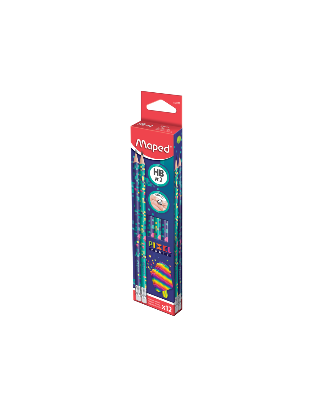 Το μολύβι Pixel Party της Maped είναι ΗΒ μολύβι ρητίνης.Eίναι κατασκευασμένο από 40,9% ανακυκλωμένα υλικά. Το μολύβι διαθέτει γόμα. Είναι εργονομικό καθώς είναι τριγωνικό για μεγαλύτερη άνεση και καλύτερο κράτημα. Η διακόσμηση του μολυβιού είναι εμπνευσμένη από το gaming και το metaverse. Σχέδια μοντέρνα που θα ξετρελάνουν αγόρια και κορίτσια.