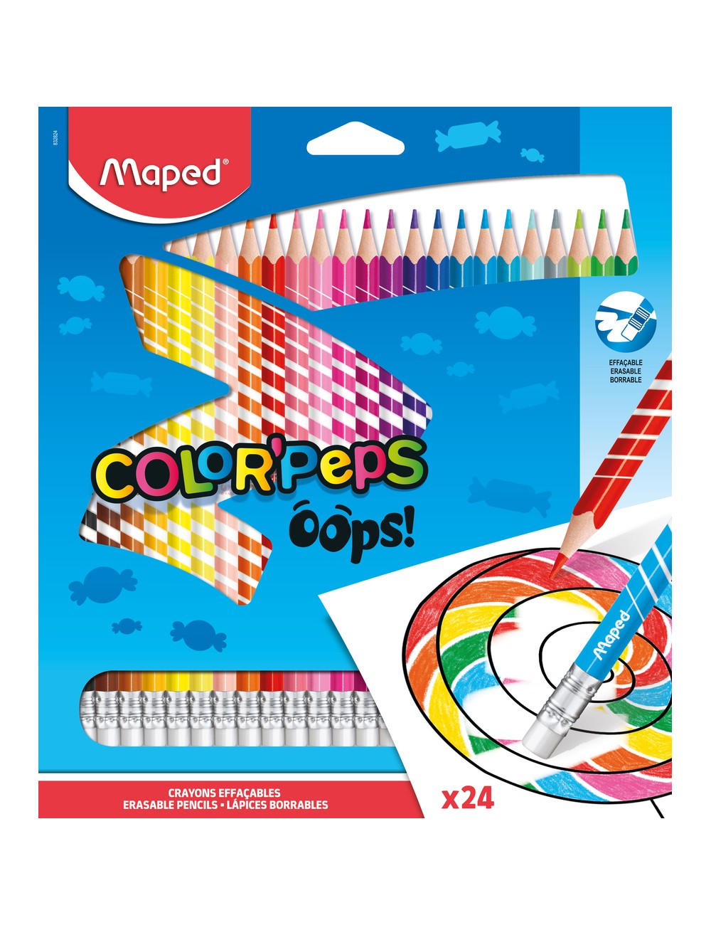 Άριστης ποιότητας ξυλομπογιά σε 24 υπέροχα χρώματα. Μύτη απαλή 2,9mm που δεν σπάει και ξύνεται εύκολα. Τριγωνικό σχήμα για καλύτερο κράτημα. Στο πίσω μέρος διαθέτει γόμα για να διορθώνετε τις ζωγραφιές σας ή να κάνετε ιδιαίτερα σχέδια.