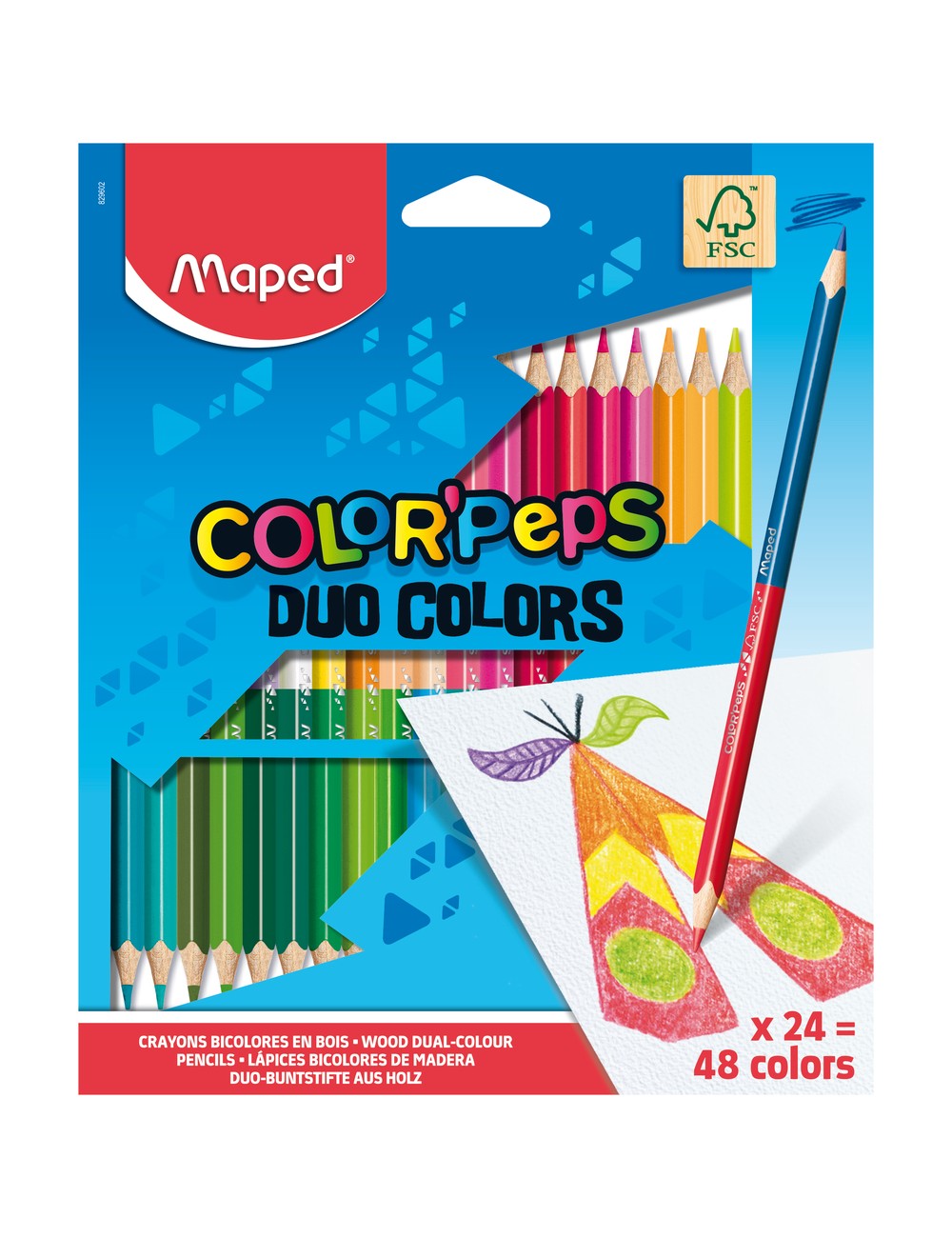 Οι ξυλομπογιές DUO FSC της Maped είναι πιστοποιημένες για την προστασία των δασών. Είναι άριστης ποιότητας. Είναι εργονομικές καθώς είναι τριγωνικές για καλύτερο κράτημα. Η μύτη 2,9mm είναι απαλή και ανθεκτική. Ξύνεται εύκολα.Κατασκευάζονται σύμφωνα με τους κανονισμούς παιχνιδιών.